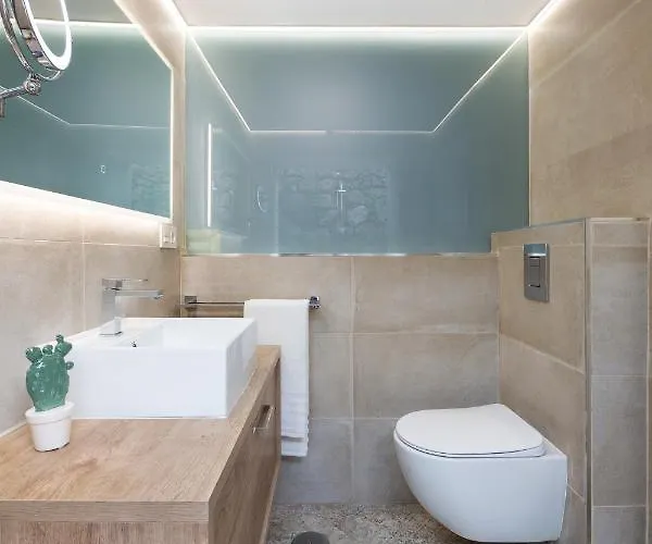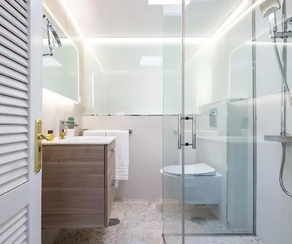 Det finns bekvämligheter som strykutrustning, strykjärn med strykbräda och luftkonditionering samt TV med satellitkanaler och plattskärms-TV med satellitkanaler. Förutom soffa och arbetsbord har inredningen ljudisolerade fönster. I badrummet finns även en duschkabin, en separat toalett och ett badkar. Hårtorkar, badlakan och handdukar ingår för ökad komfort.